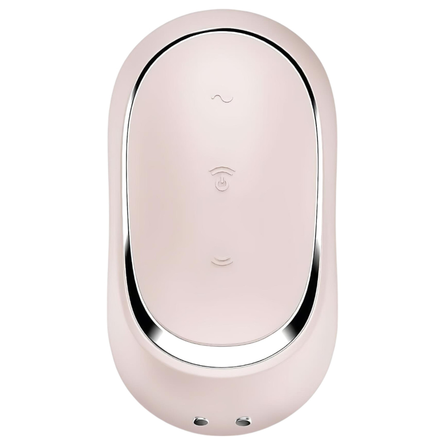Na stražnjoj strani uređaja naći ćeš tri gumba. Srednji gumb dugim pritiskom (oko 3 sekunde) uključuje i isključuje stimulaciju zračnim valovima. Istim gumbom, kao i donjim polukružnim gumbom, podešavaš jačinu stimulacije prema želji.