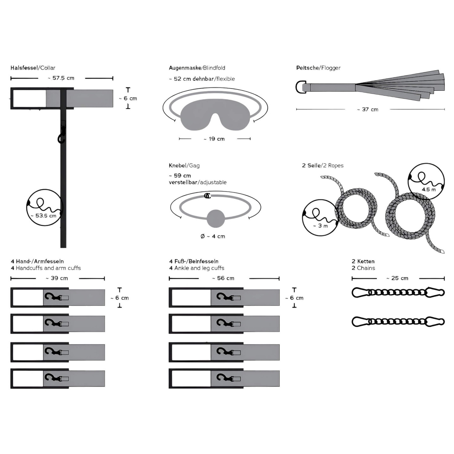 • Svestrani dodaci - lisice, maska za oči, bič i uže za vezivanje.